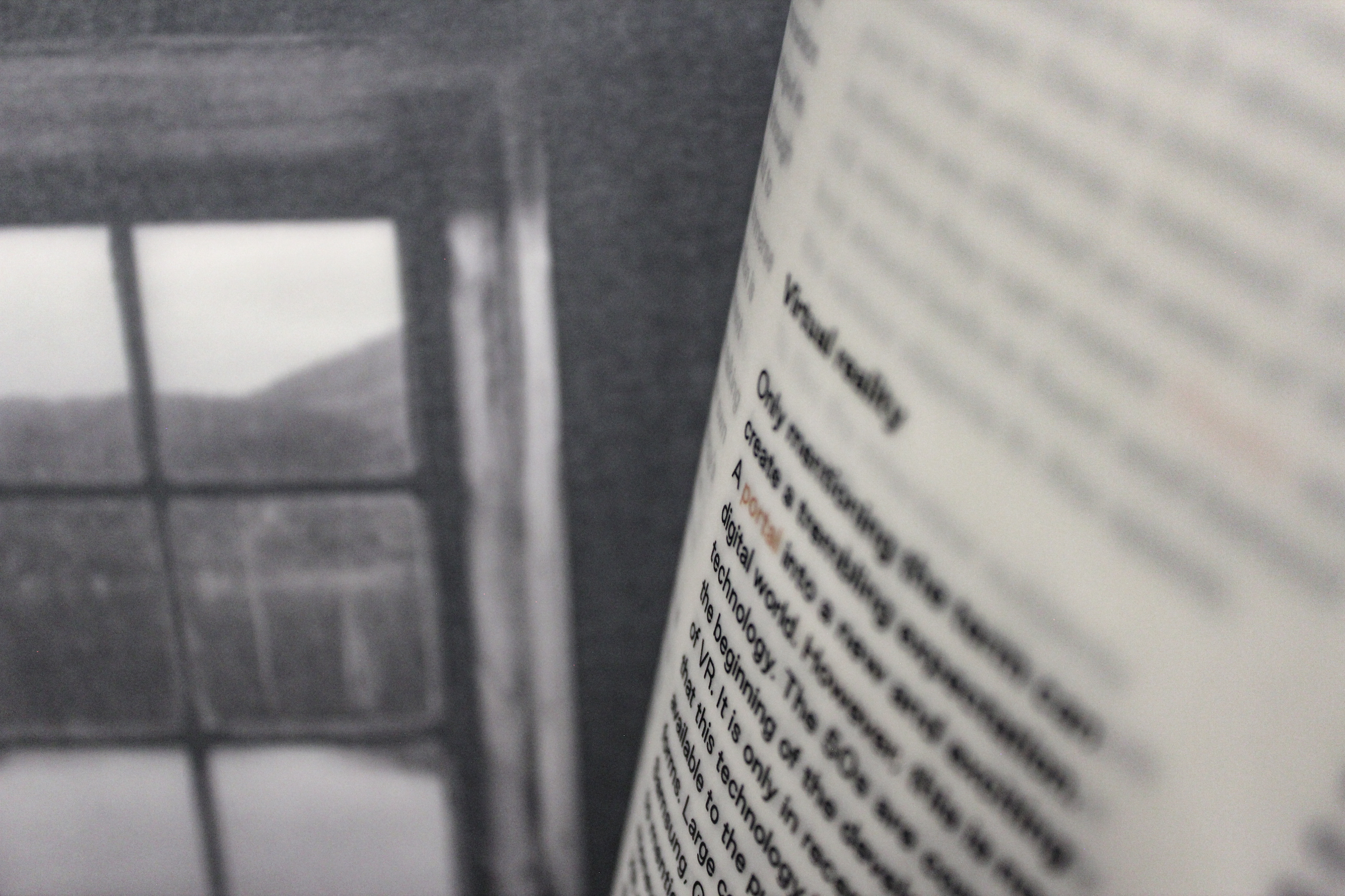 In this case, a Release party was to be arranged as well as promotion for the event where this was my main responsibility as Promotion Manager. In addition to this, I was responsible for the layout of a selected article in the magazine. I only needed to read one word from the article to understand that this was the one I wanted to work with, the specific word was "portal" - in Gustav Kvaal and Torkell Bernsen's article: "Inside the narrative". Through the process, I came to the conclusion that the article (which did not contain any specific image or illustration) needed something more visual. A picture I had taken late summer came to fit perfectly for this article. The window, with a view of the fjord and the mountains, communicated to me a portal into another landscape, possibly the wearing of VR glasses and diving into a new world.